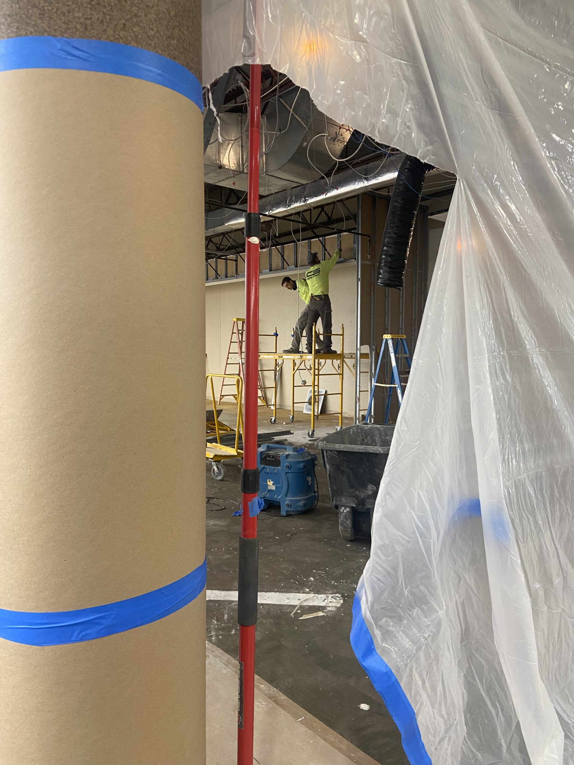 Busy Week for our Construction Team! The crew was busy climbing ladders while working on our electrical and mechanical renovation needs. You can now make out the area where our future rooms will be located. Take a look along the gallery wall and notice our new electrical outlets that will be super convenient for patrons of all ages working on projects. Enjoy some photos of our Week 3 progress!