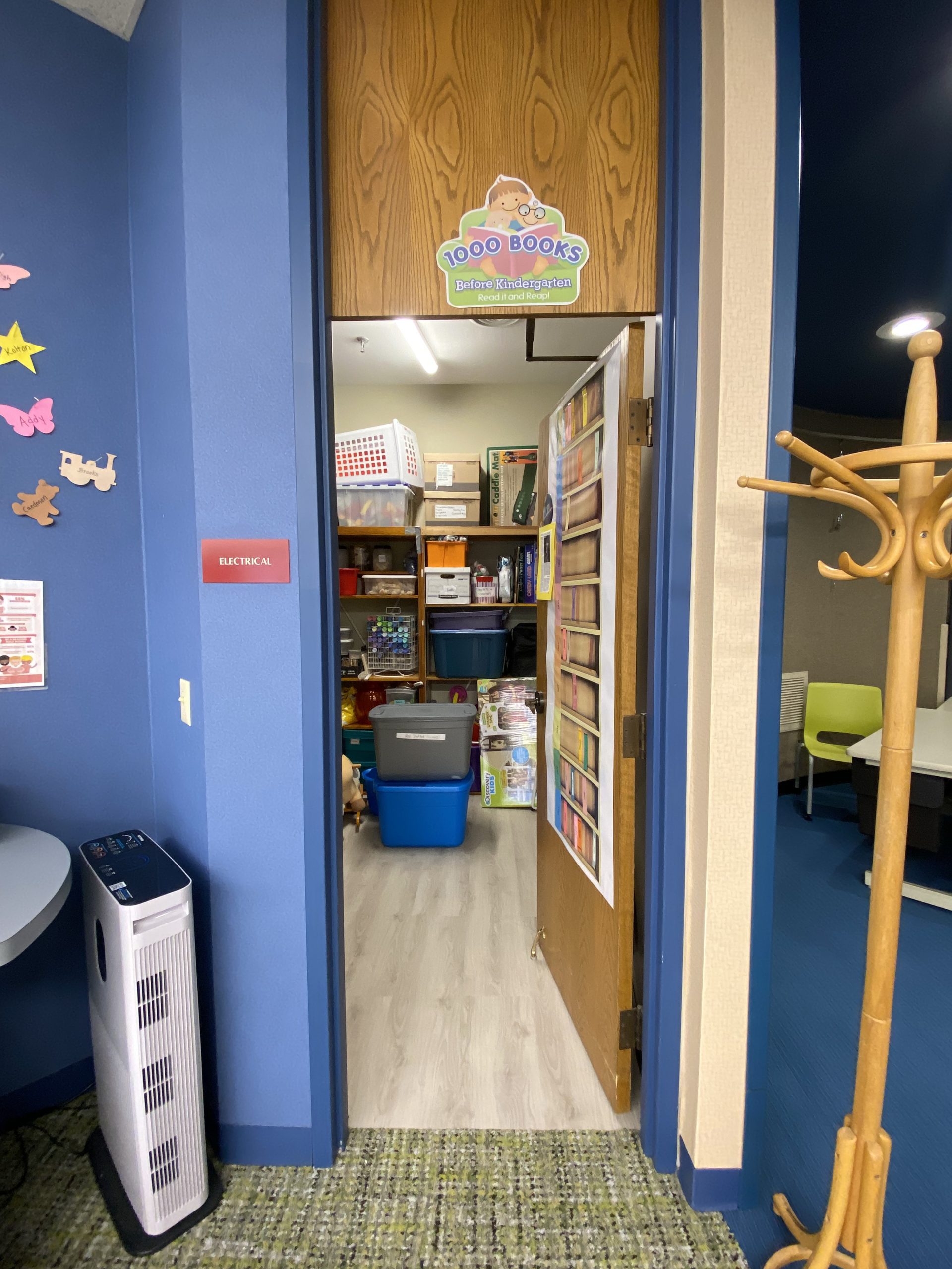 The Children’s Program Room was updated with an LVT (Luxury Vinyl Tile) that creates a calm and creative environment for kids. The staff work area and storage closet were also updated with LVT. This flooring is not only pleasing to the eye but is functional as messes sometimes happen in these areas and the flooring enables staff to keep the areas clean.